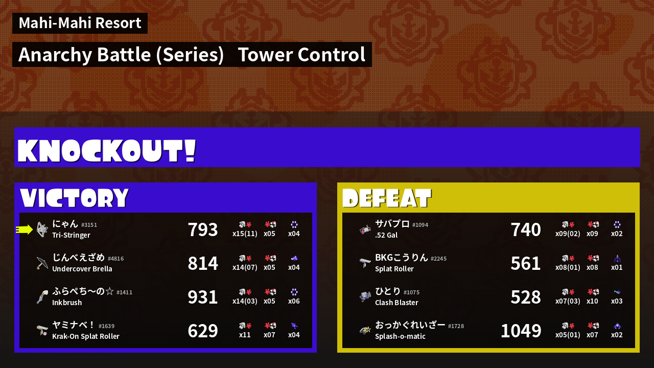 | Mode | Tower Control - Anarchy Battle (Series) | ||