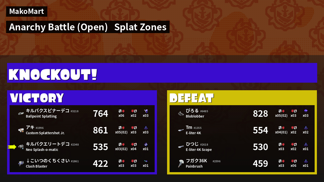 | Mode | Splat Zones - Anarchy Battle (Open) | ||