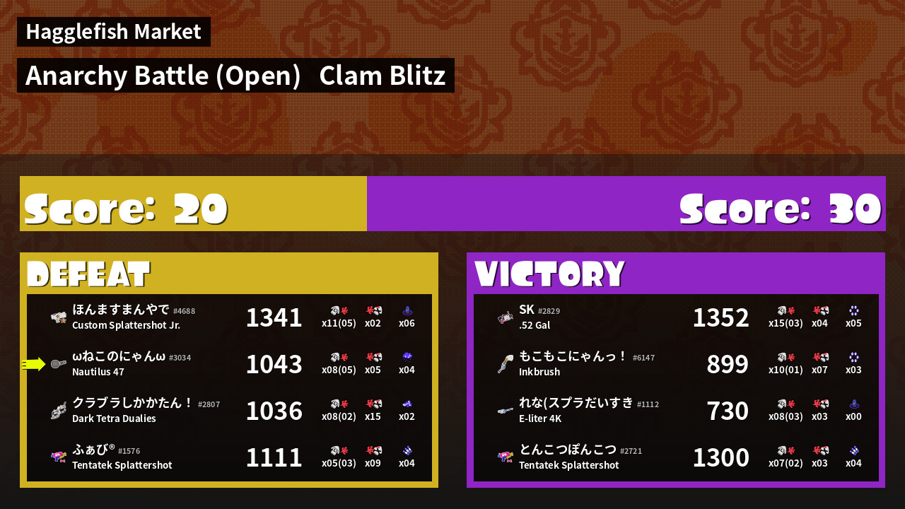 | Mode |    Clam Blitz -   Anarchy Battle (Open) | ||