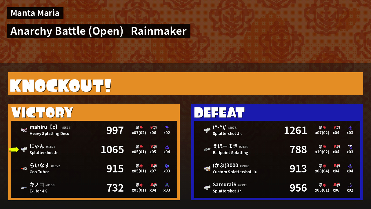 | Mode | Rainmaker - Anarchy Battle (Open) | ||