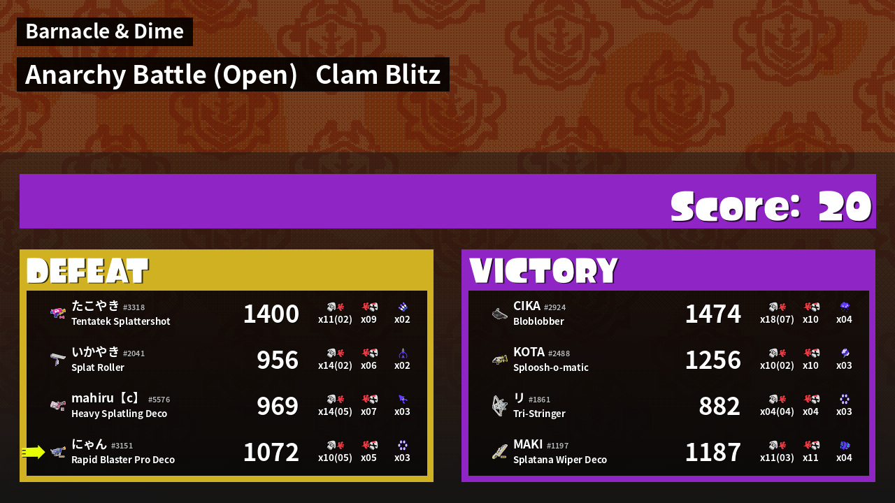 | Mode | Clam Blitz - Anarchy Battle (Open) | ||