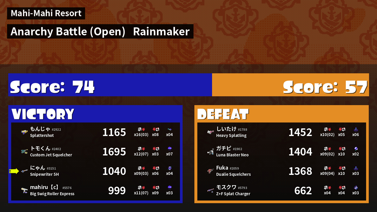 | Mode | Rainmaker - Anarchy Battle (Open) | ||