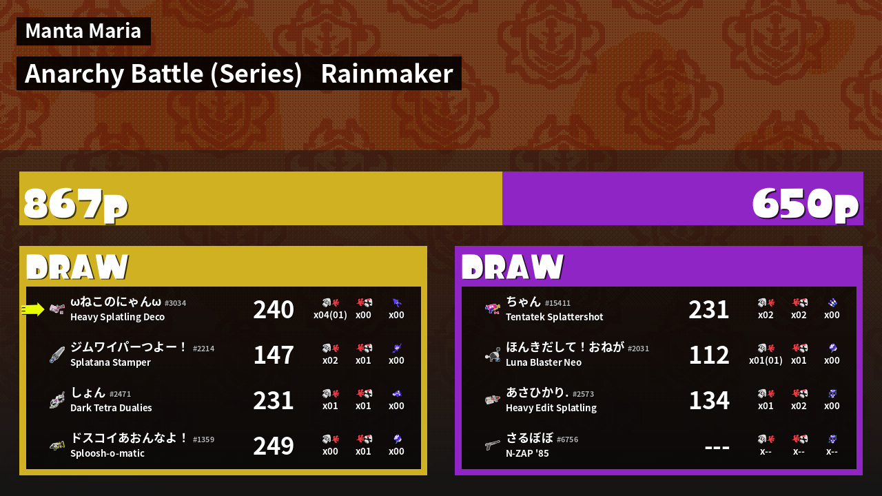 | Mode | Rainmaker - Anarchy Battle (Series) | ||