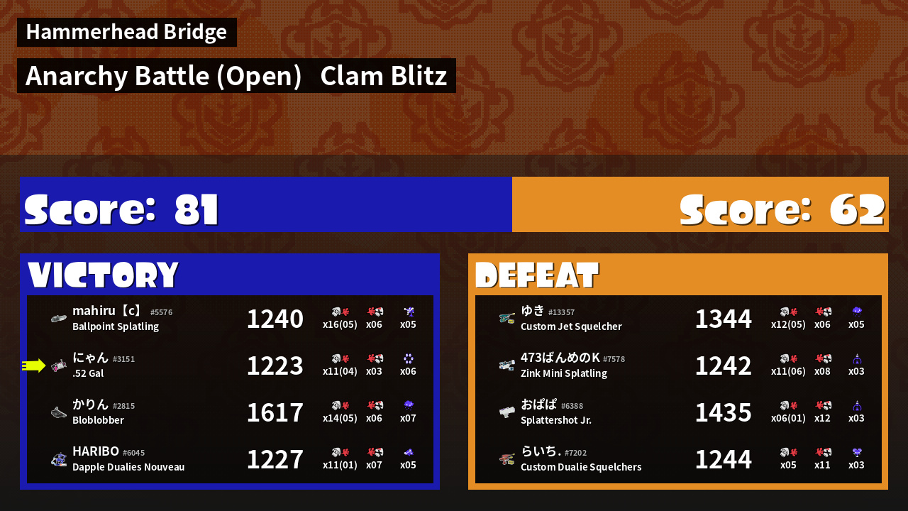 | Mode | Clam Blitz - Anarchy Battle (Open) | ||