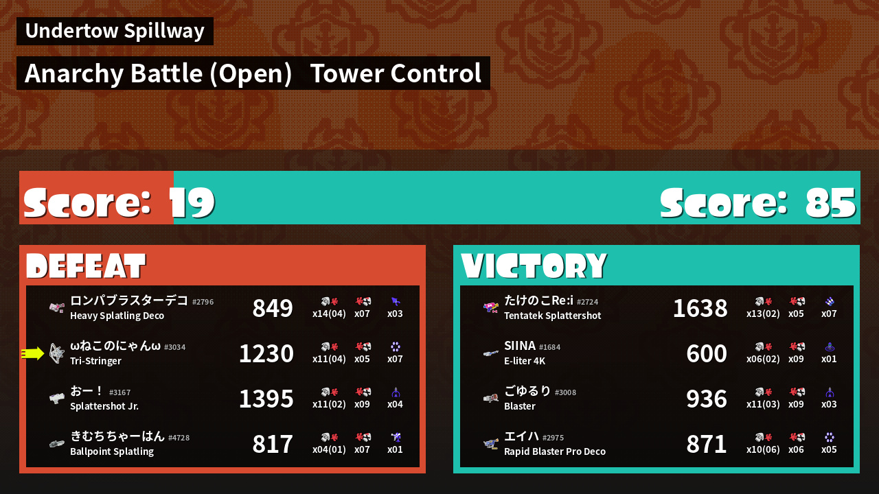 | Mode | Tower Control - Anarchy Battle (Open) | ||