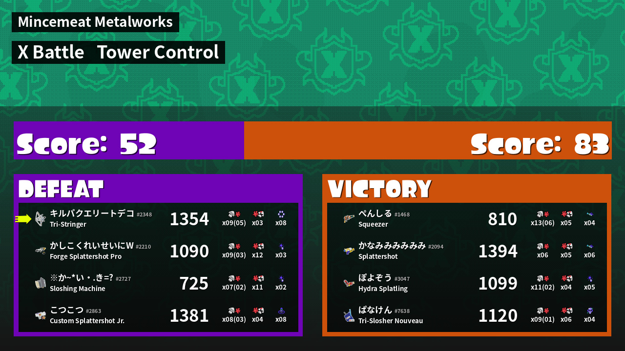 | Mode | Tower Control - X Battle | ||