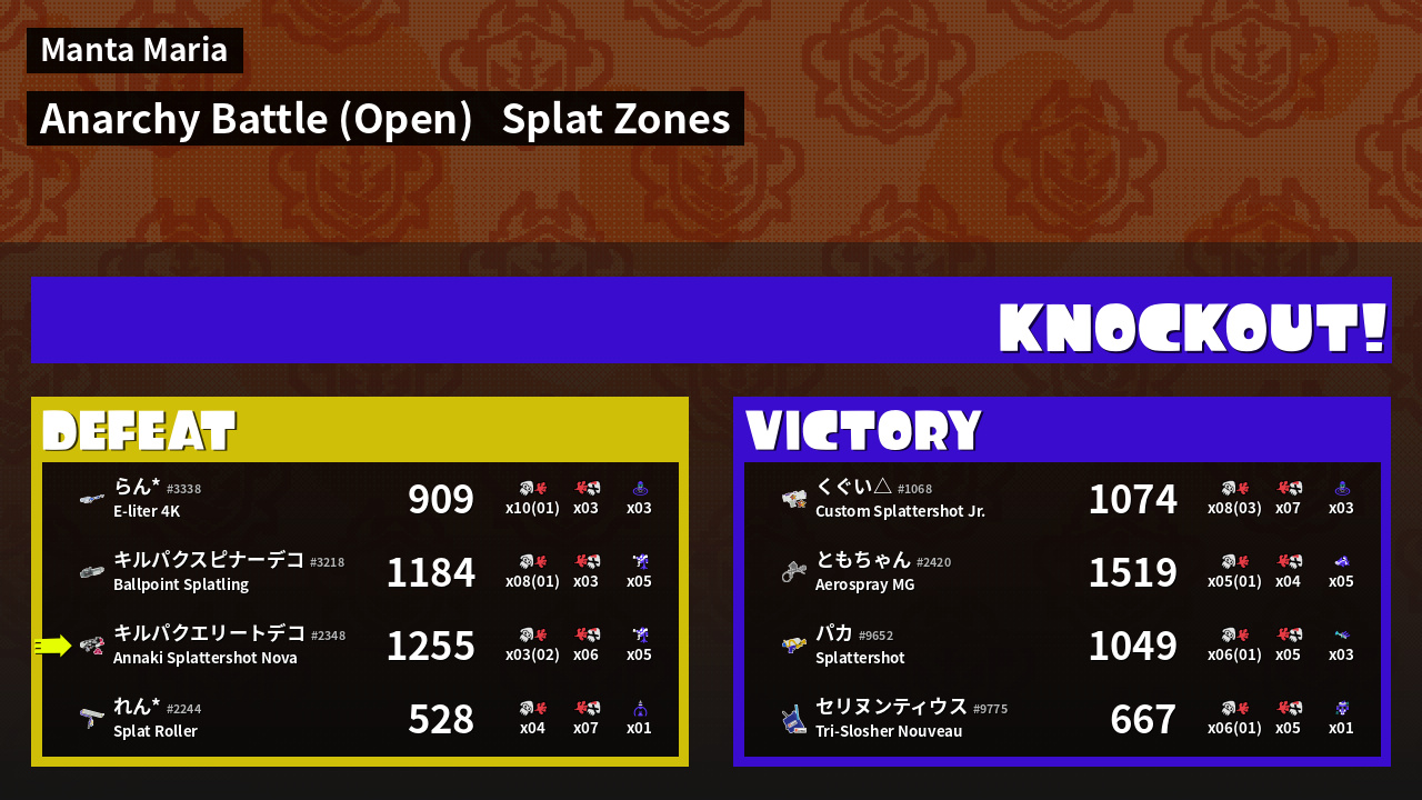 | Mode | Splat Zones - Anarchy Battle (Open) | ||