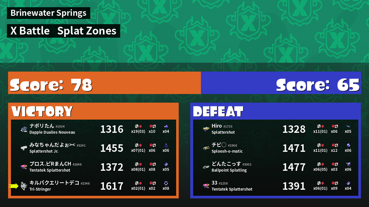 | Mode | Splat Zones - X Battle | ||
