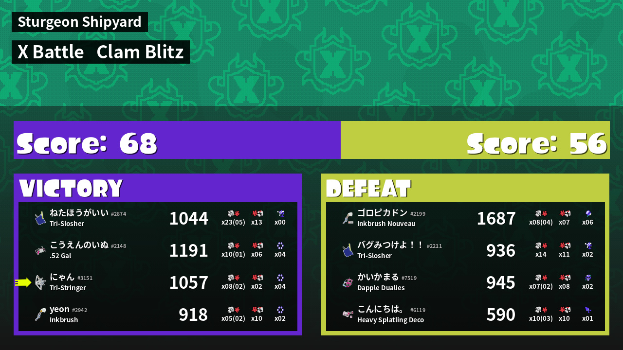 | Mode | Clam Blitz - X Battle | ||