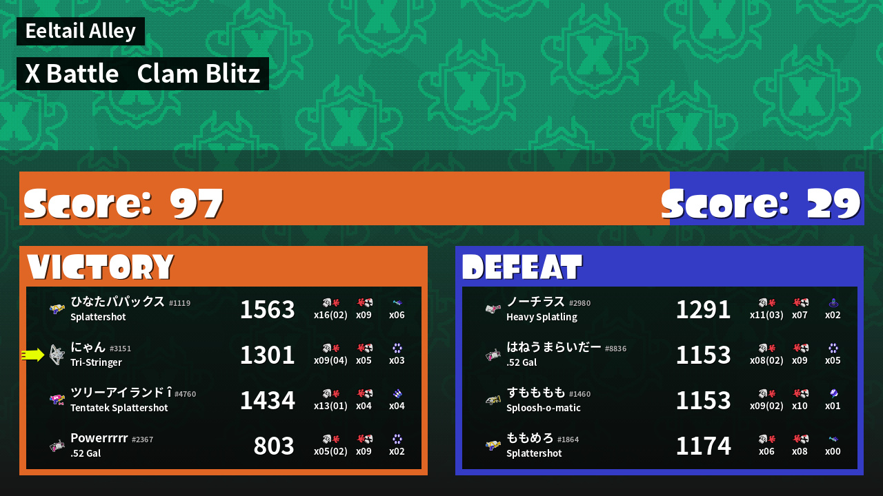 | Medals | #1 Clam Carrier #1 Super Jump Spot #1 Splat Assister | ||