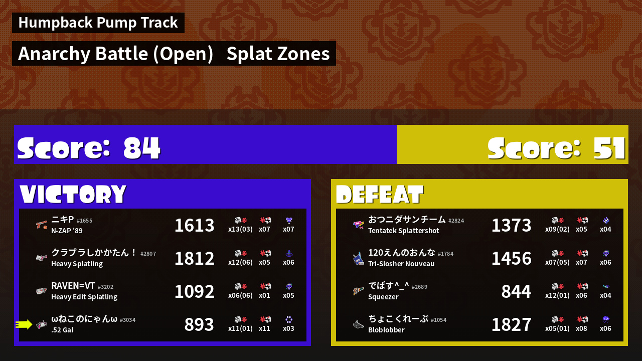 | Mode | Splat Zones - Anarchy Battle (Open) | ||