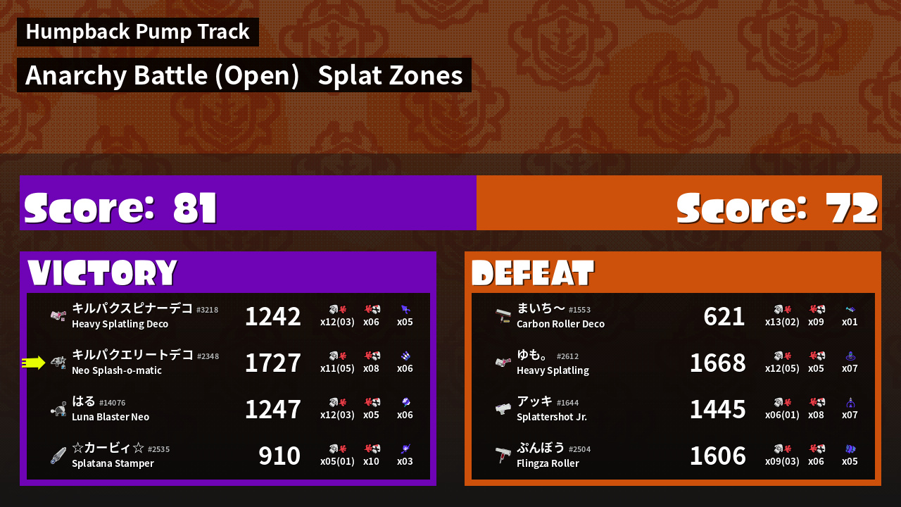 | Mode | Splat Zones - Anarchy Battle (Open) | ||
