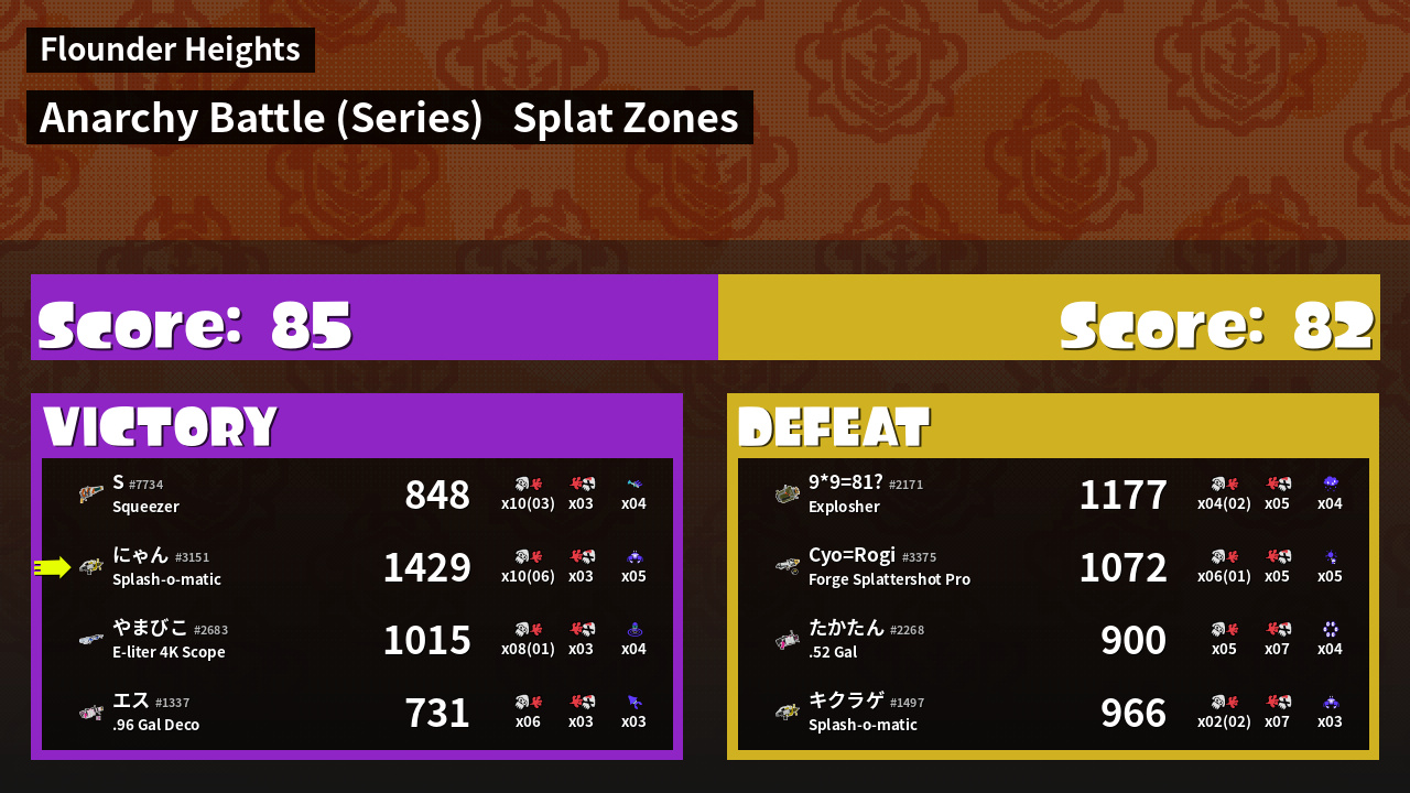 | Mode |    Splat Zones -   Anarchy Battle (Series) | ||