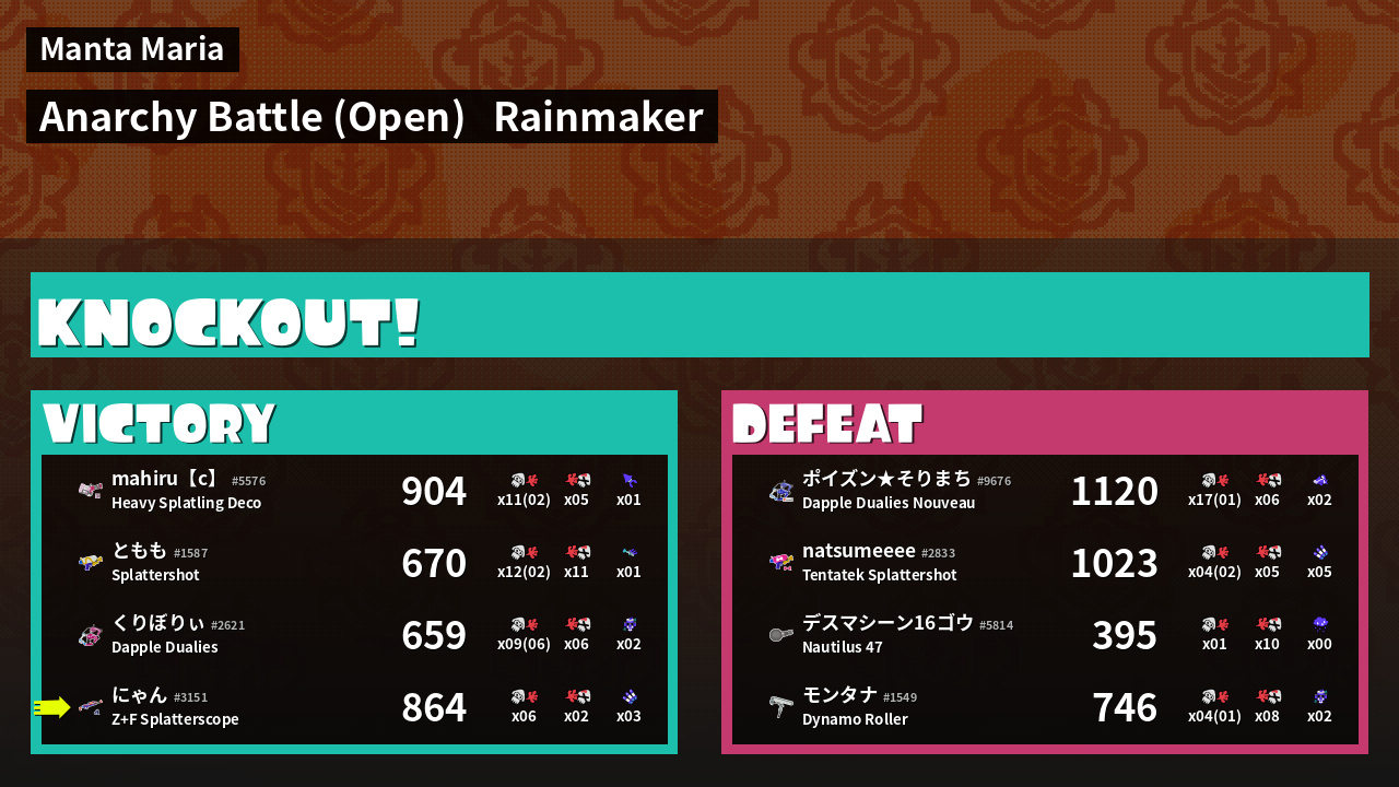 | Mode | Rainmaker - Anarchy Battle (Open) | ||