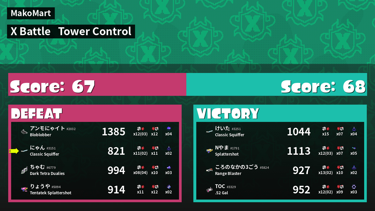 | Mode | Tower Control - X Battle | ||