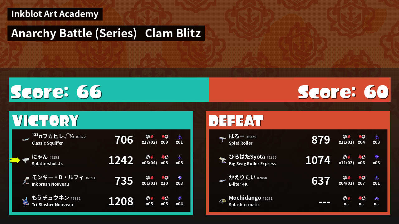 | Mode | Clam Blitz - Anarchy Battle (Series) | ||