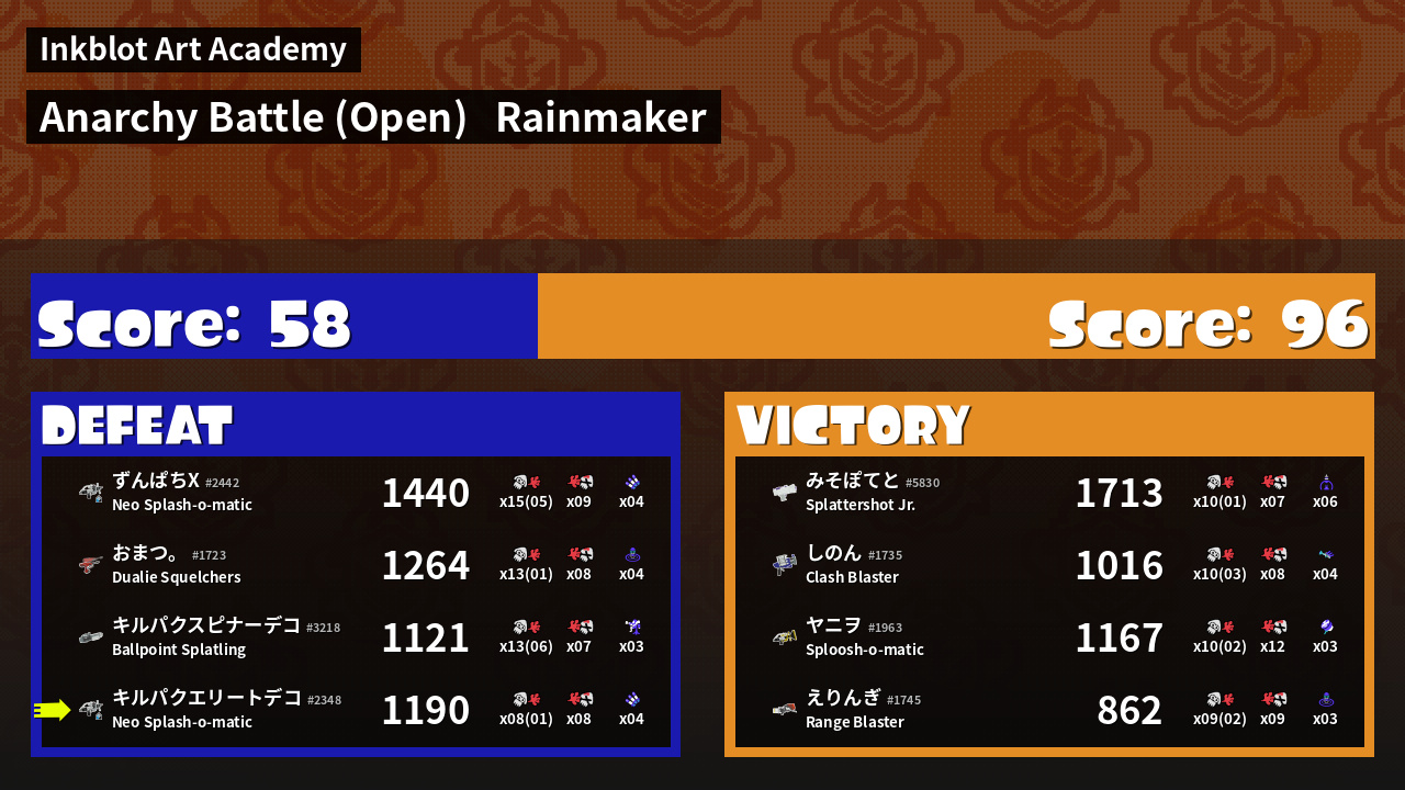 | Mode | Rainmaker - Anarchy Battle (Open) | ||