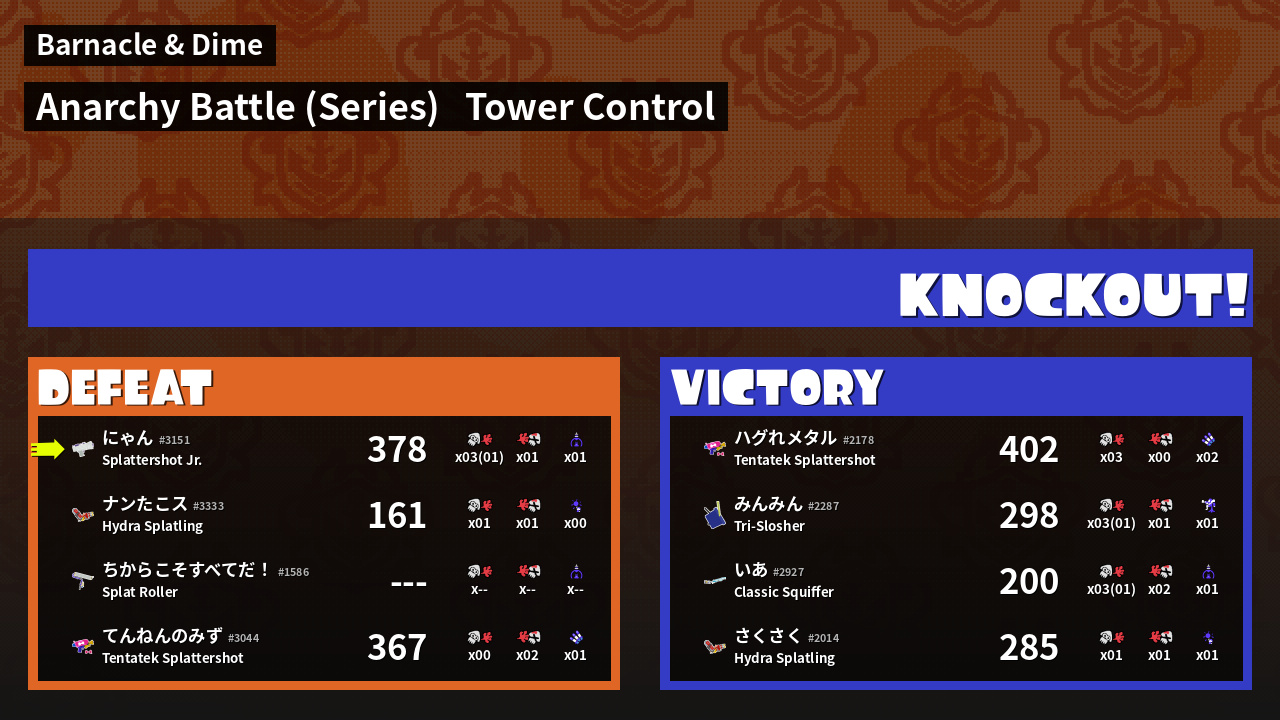 | Mode | Tower Control - Anarchy Battle (Series) | ||