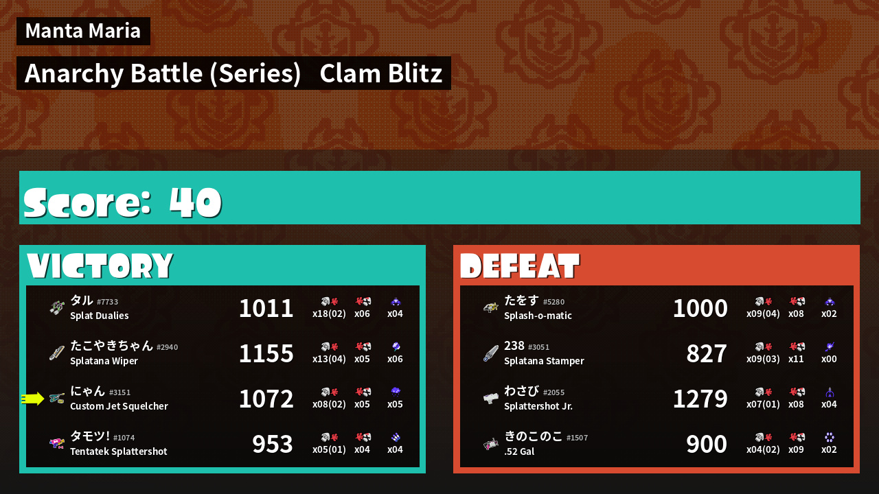 | Mode | Clam Blitz - Anarchy Battle (Series) | ||