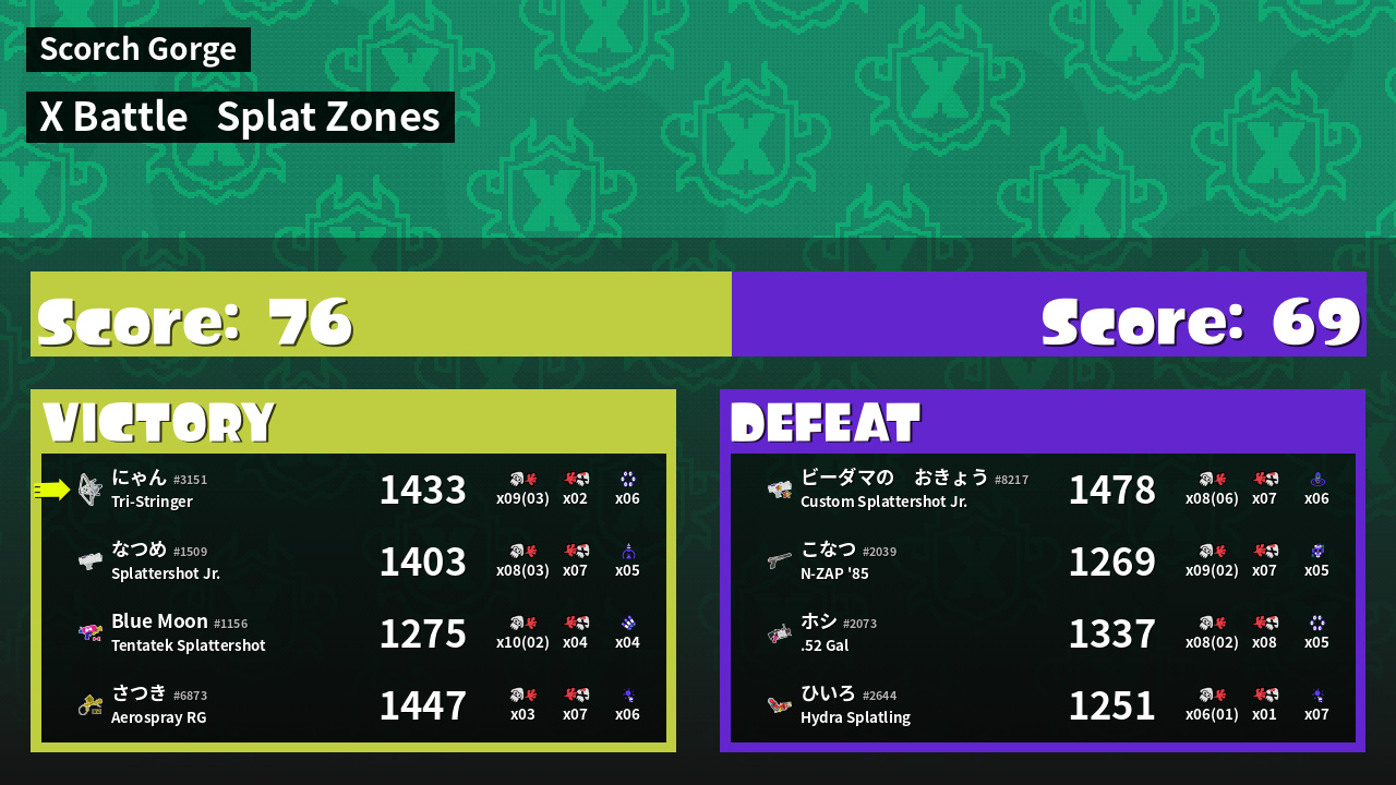 | Medals | #1 Splat Zone Guard #1 Super Jump Spot #1 Splat Assister | ||