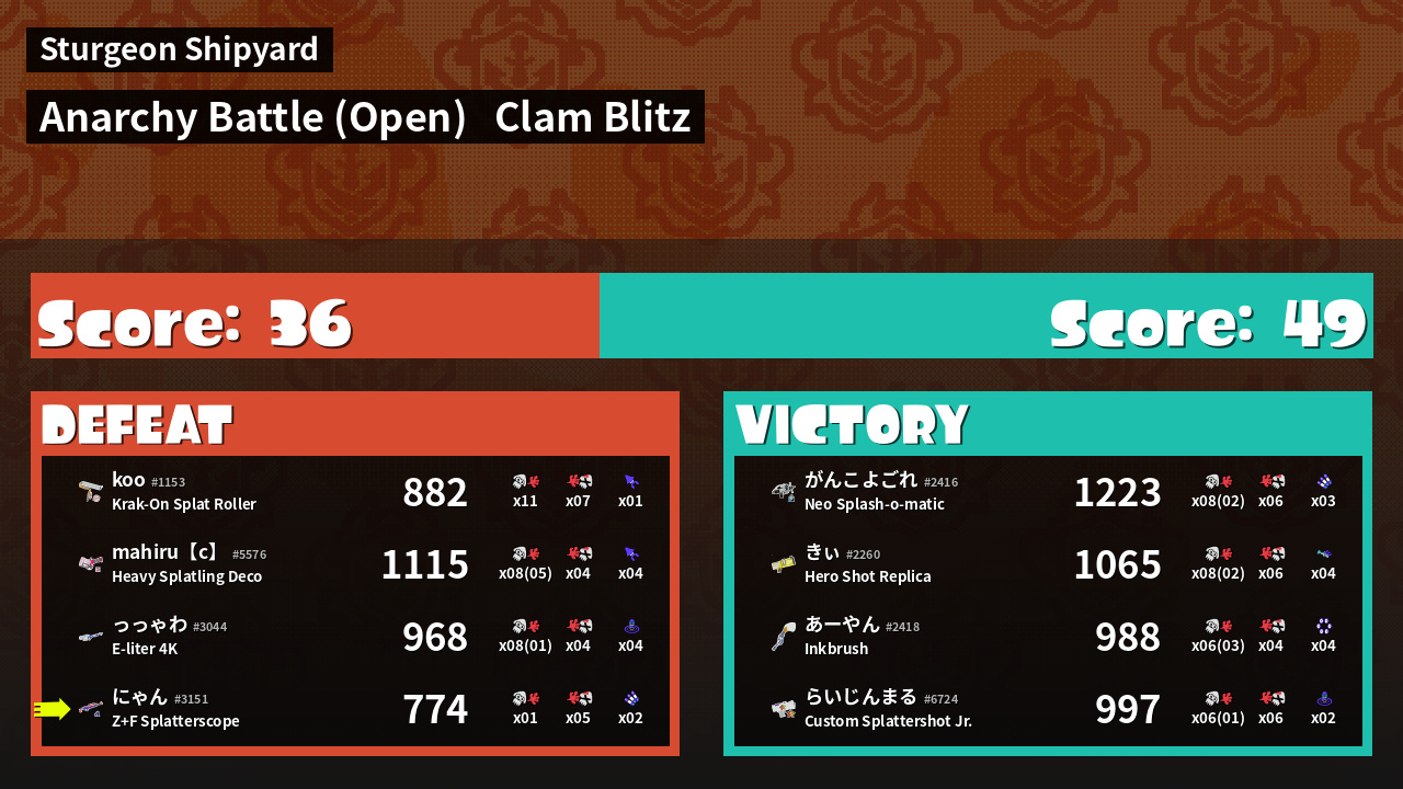 | Mode | Clam Blitz - Anarchy Battle (Open) | ||