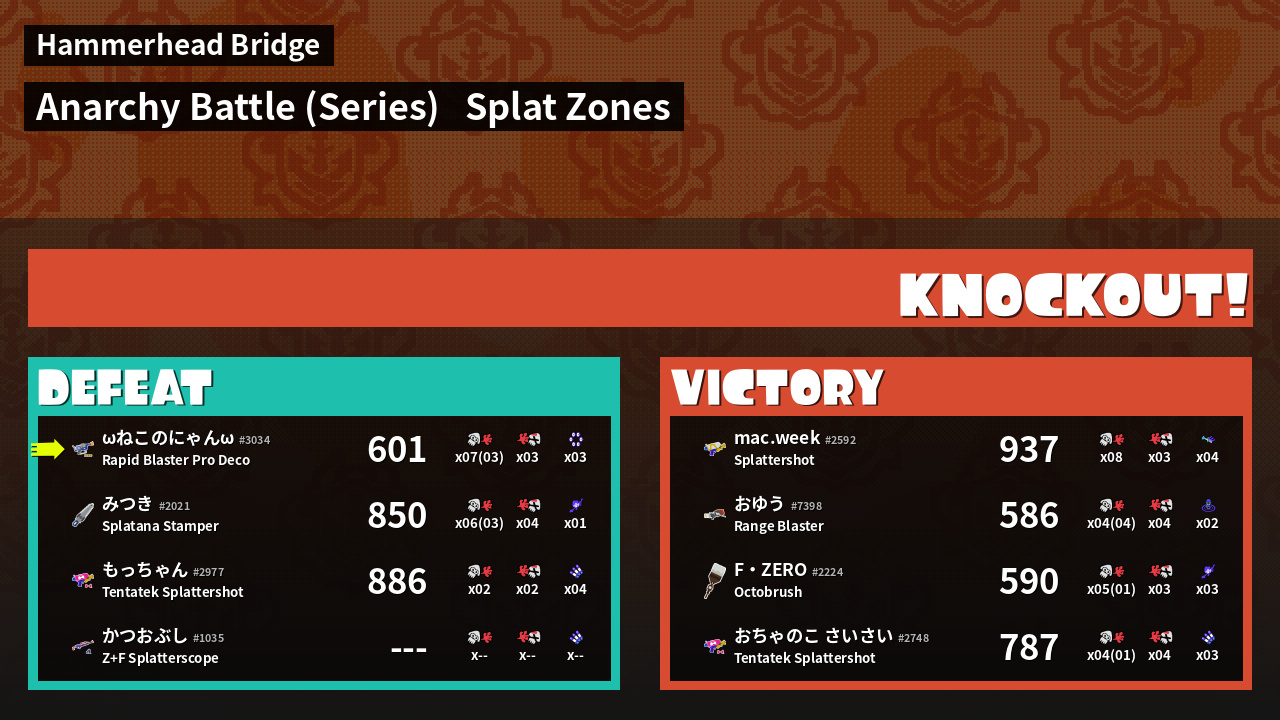 | Mode | Splat Zones - Anarchy Battle (Series) | ||