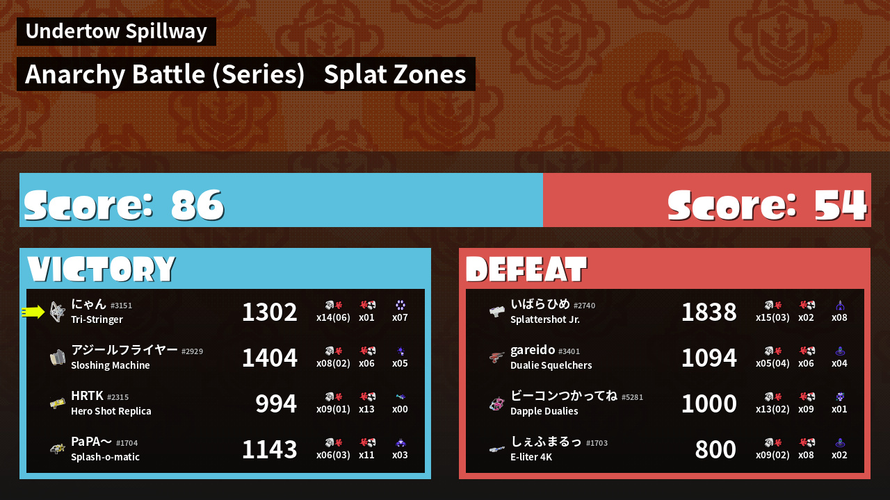 | Mode | Splat Zones - Anarchy Battle (Series) | ||