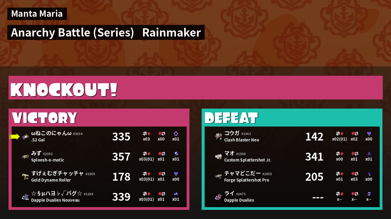 | Weapon | .52 Gal ( Splash Wall / Killer Wail 5.1) | ||