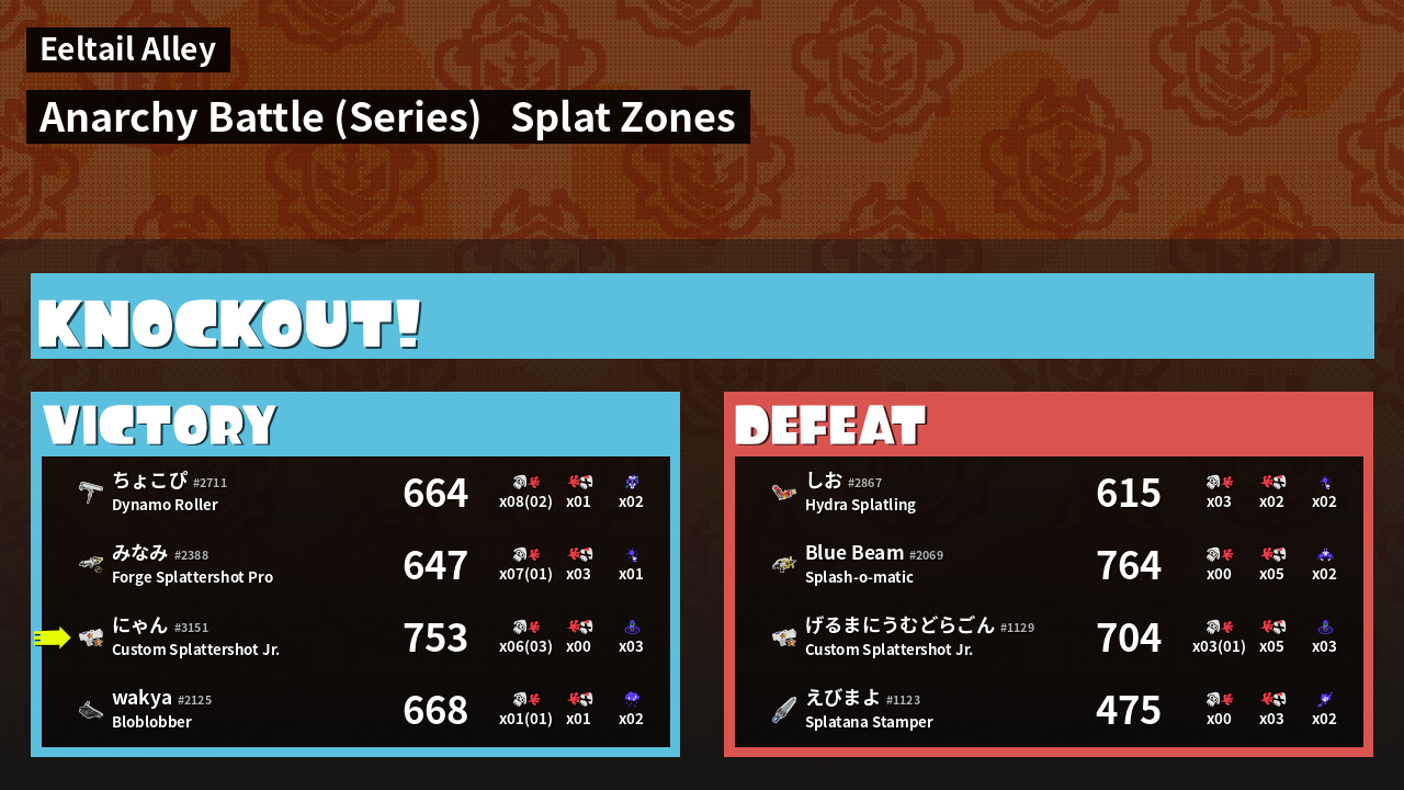 | Medals | #1 Splat Zone Guard #1 Turf Inker #1 Splat Assister | ||