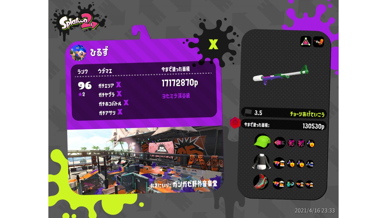 | Weapon | Splat Charger ( Splat Bomb, Sting Ray) | |||||||||||||||||||||||||||||||||||||