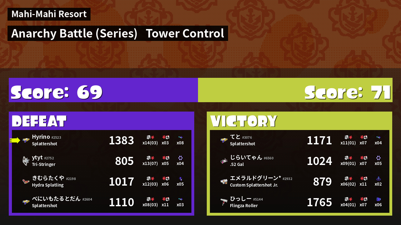 | Medals | #1 Overall Splatter #1 Score Booster #1 Turf Inker | ||