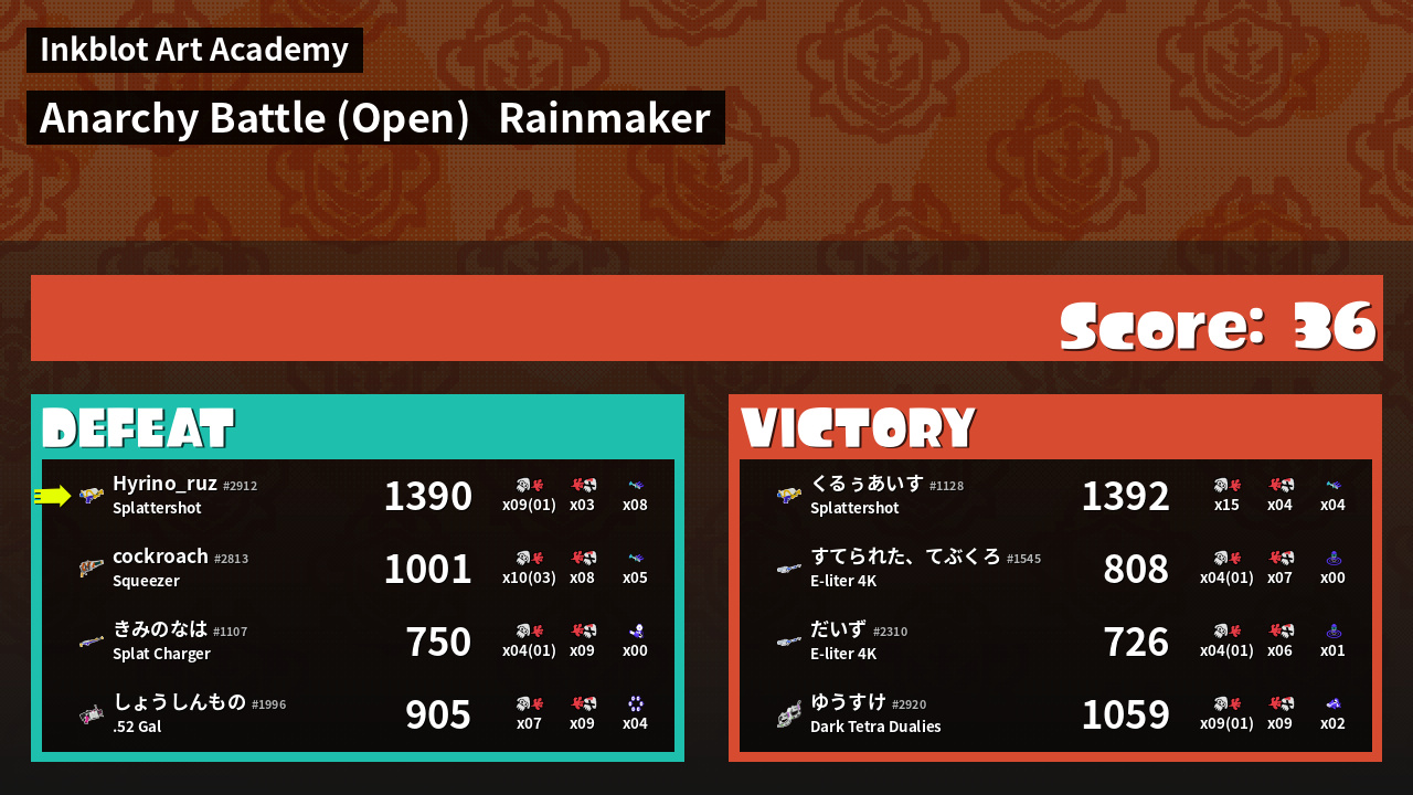 | Mode | Rainmaker - Anarchy Battle (Open) | ||