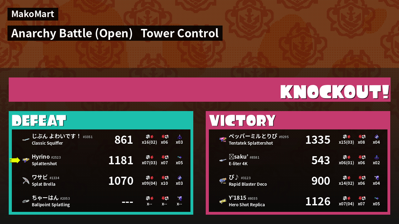 | Mode | Tower Control - Anarchy Battle (Open) | ||