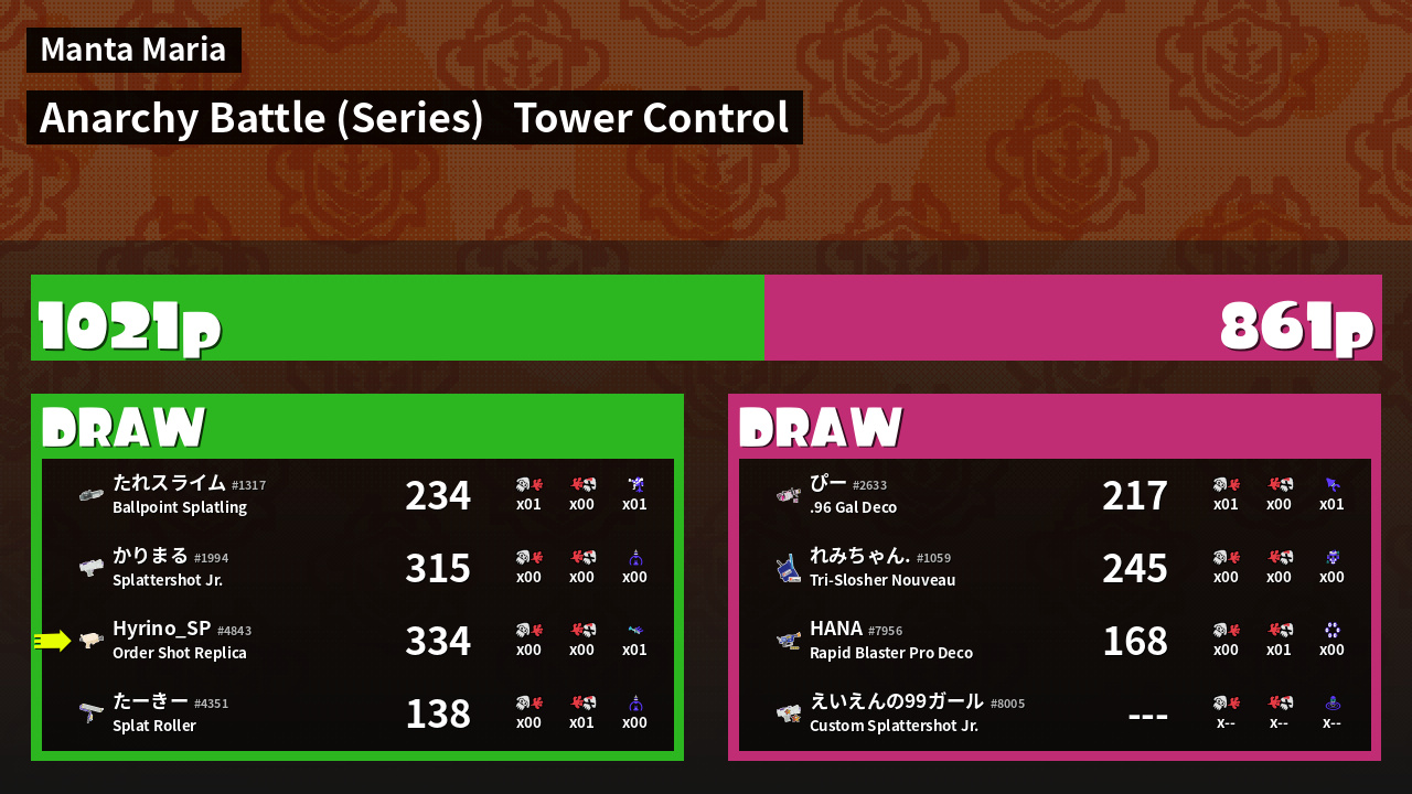 | Mode | Tower Control - Anarchy Battle (Series) | ||