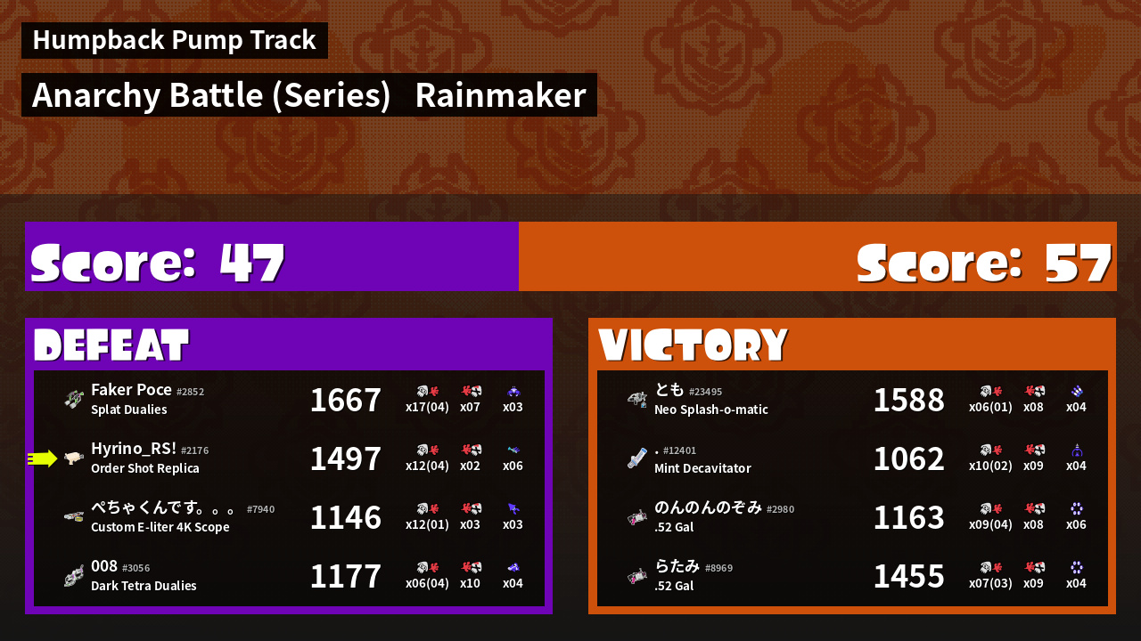 | Mode | Rainmaker - Anarchy Battle (Series) | ||