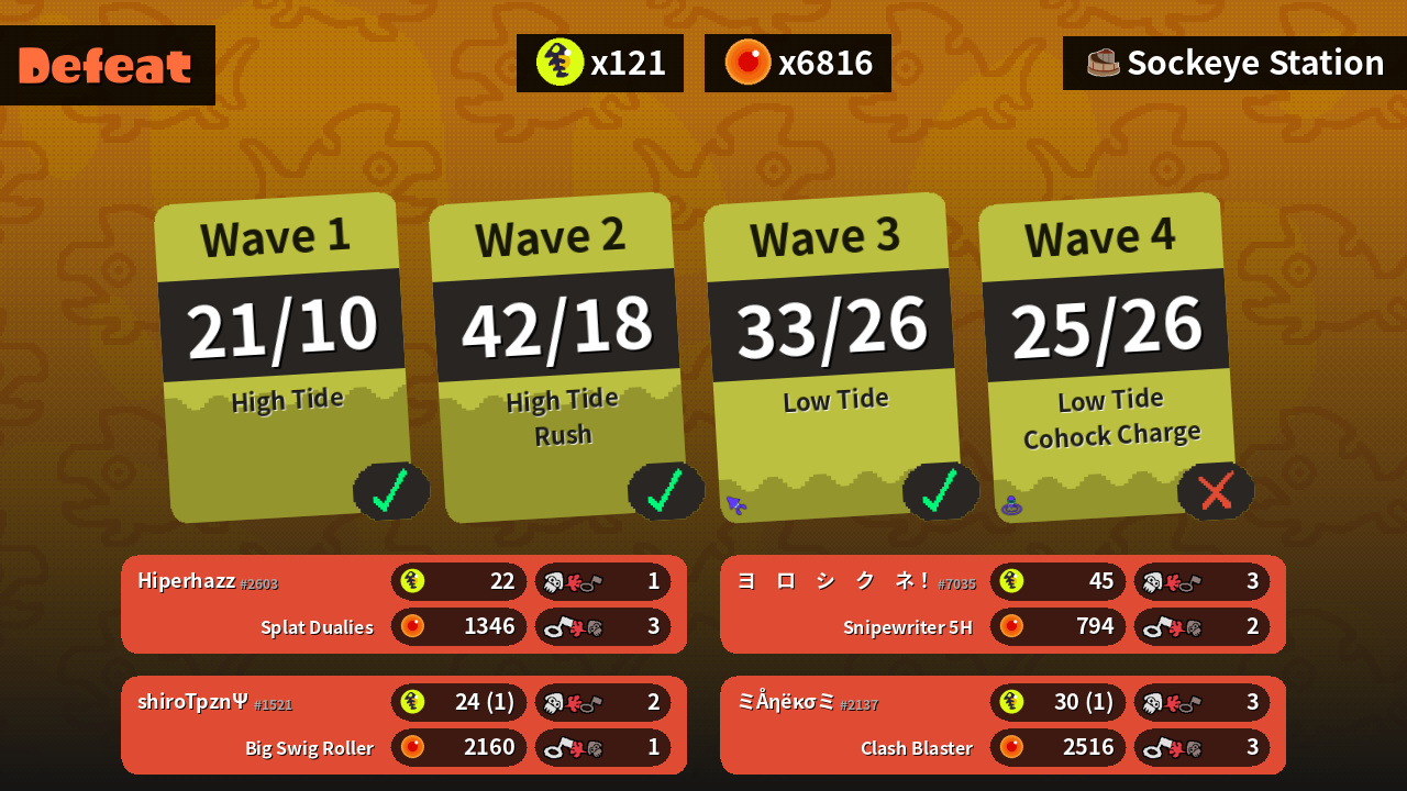 | Weapons | Splat Dualies | Snipewriter 5H | Clash Blaster | Big Swig Roller |