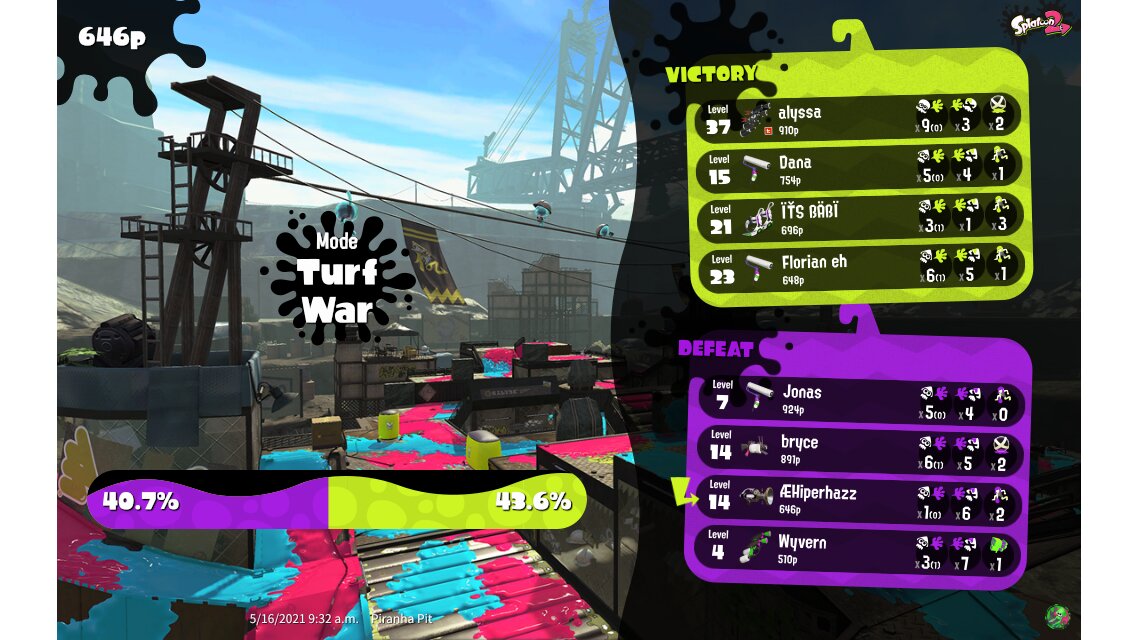 | Mode | Turf War - Regular Battle | |||||||||||||||||||||||||||||||