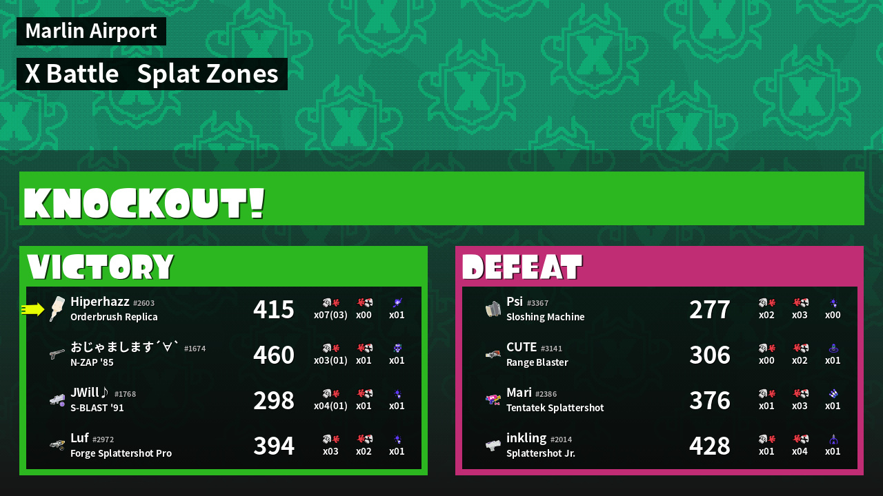 | Medals | #1 Overall Splatter #1 Splat Zone Guard #1 Popular Target | ||