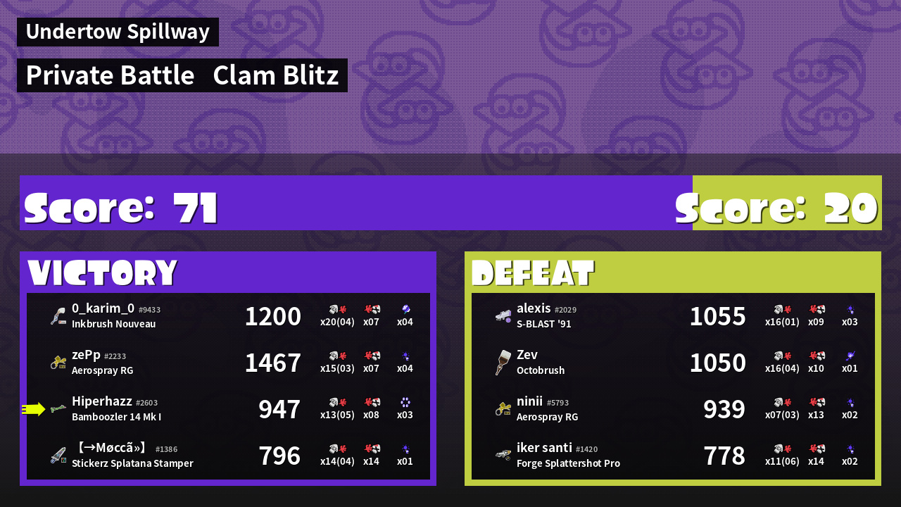 | Medals | #1 Splat Assister #1 Clam Stopper #1 Ink Consumer | ||