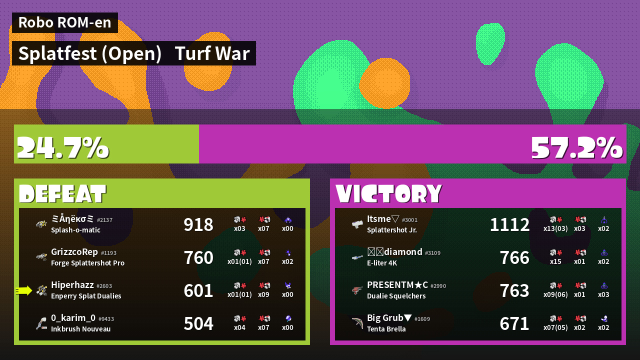 | Medals | #1 Popular Target #1 Splat Assister #1 Ground Traveler | ||