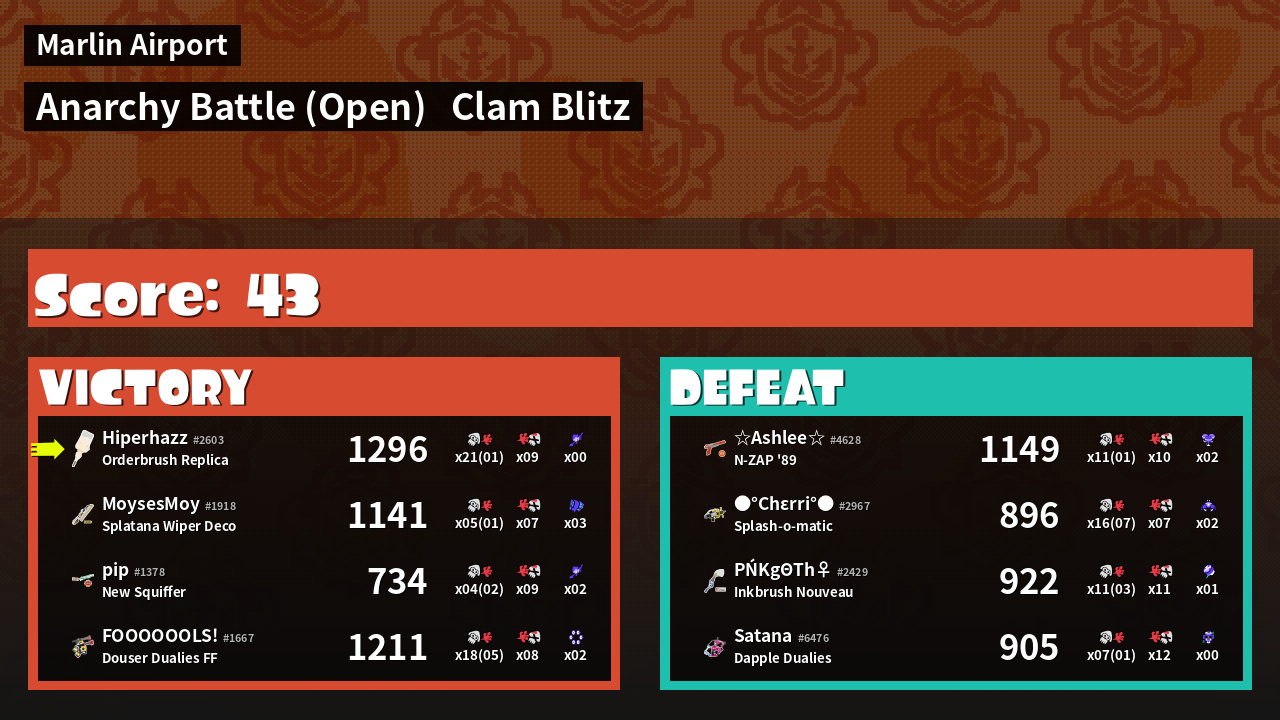 | Mode | Clam Blitz - Anarchy Battle (Open) | ||