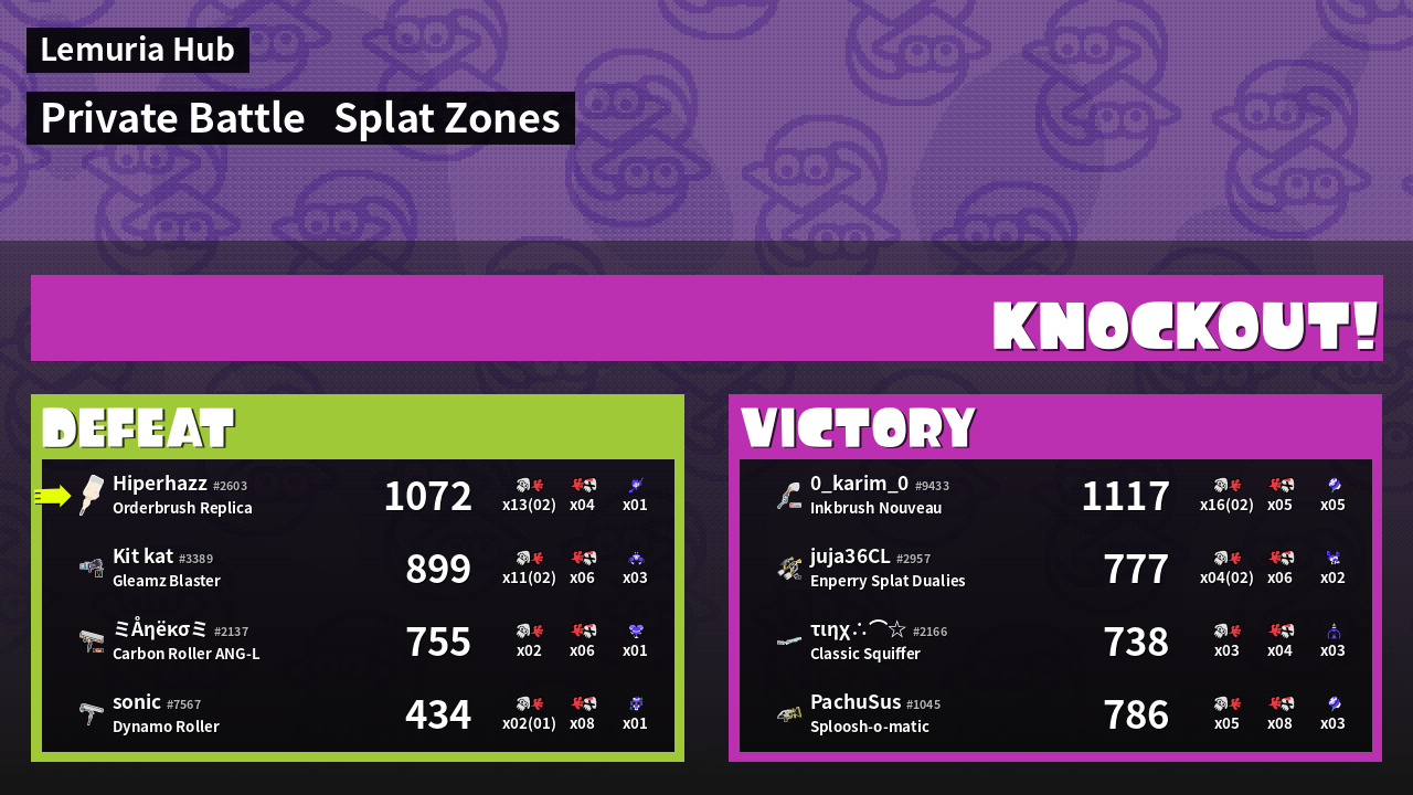 | Mode | Splat Zones - Private Battle | ||