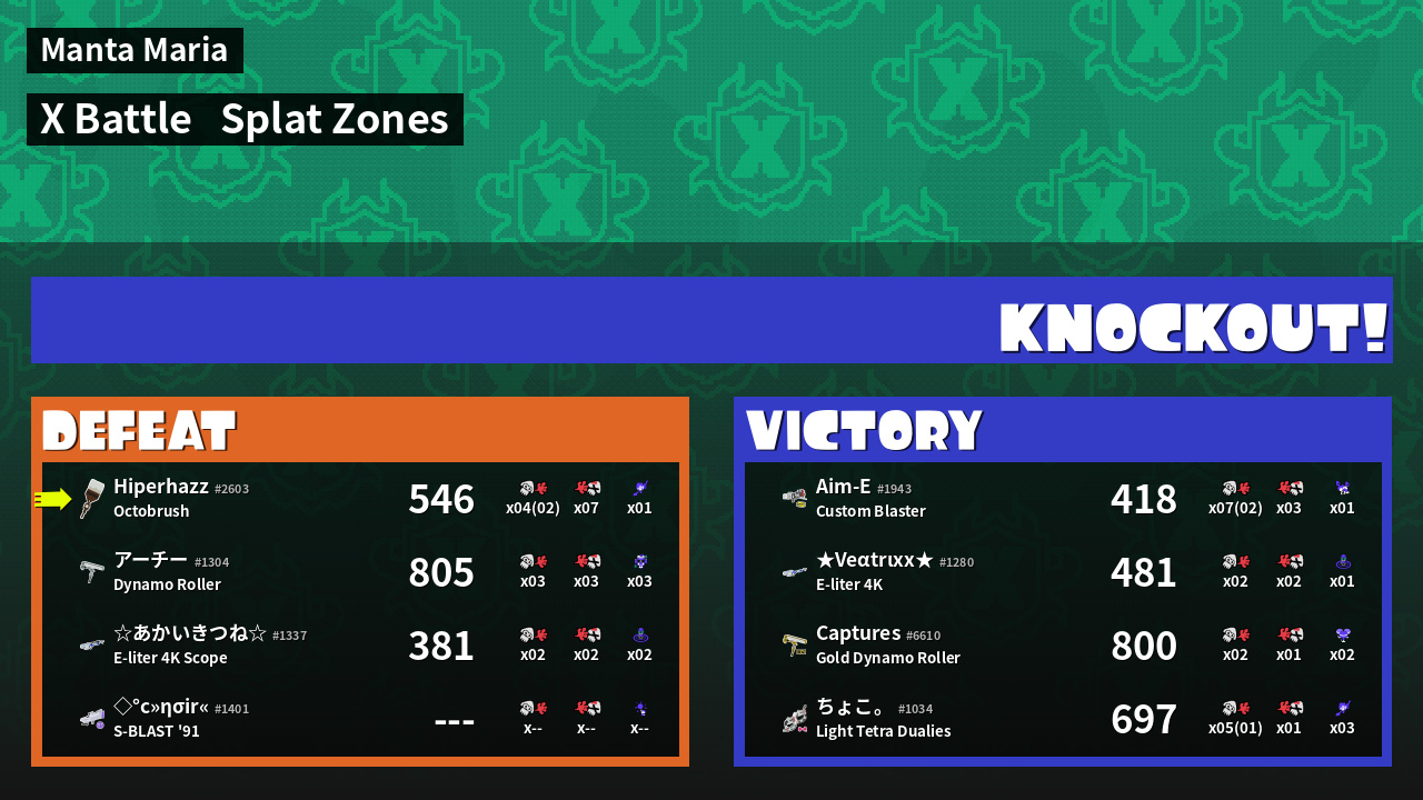 | Medals | #1 Overall Splatter #1 Splat Zone Inker #1 Splat Zone Guard | ||
