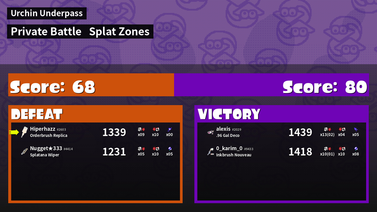 | Mode | Splat Zones - Private Battle | ||