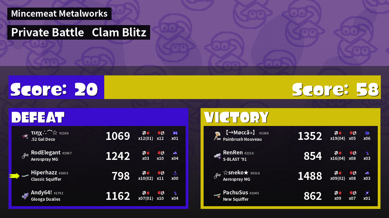 | Medals | #1 Popular Target #1 Splat Assister #2 Overall Splatter | ||