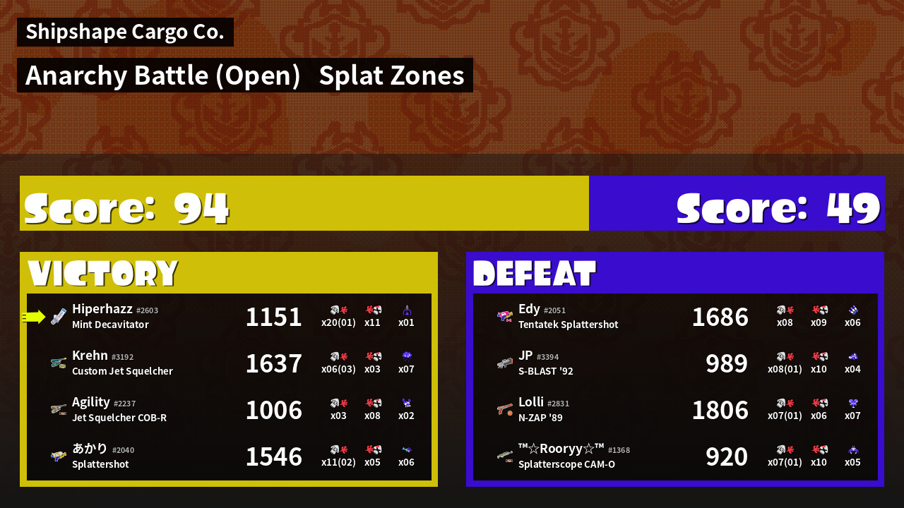 Kills / Deaths | 19 + 1 / 11 > Kill Ratio: 1.73 | ||