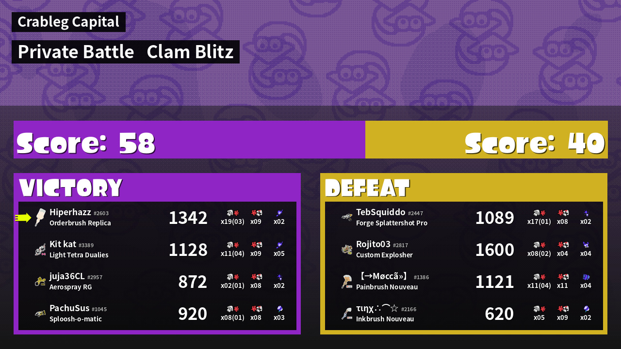 | Mode | Clam Blitz - Private Battle | ||