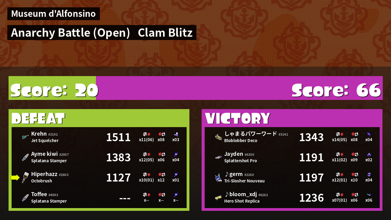 | Mode | Clam Blitz - Anarchy Battle (Open) | ||