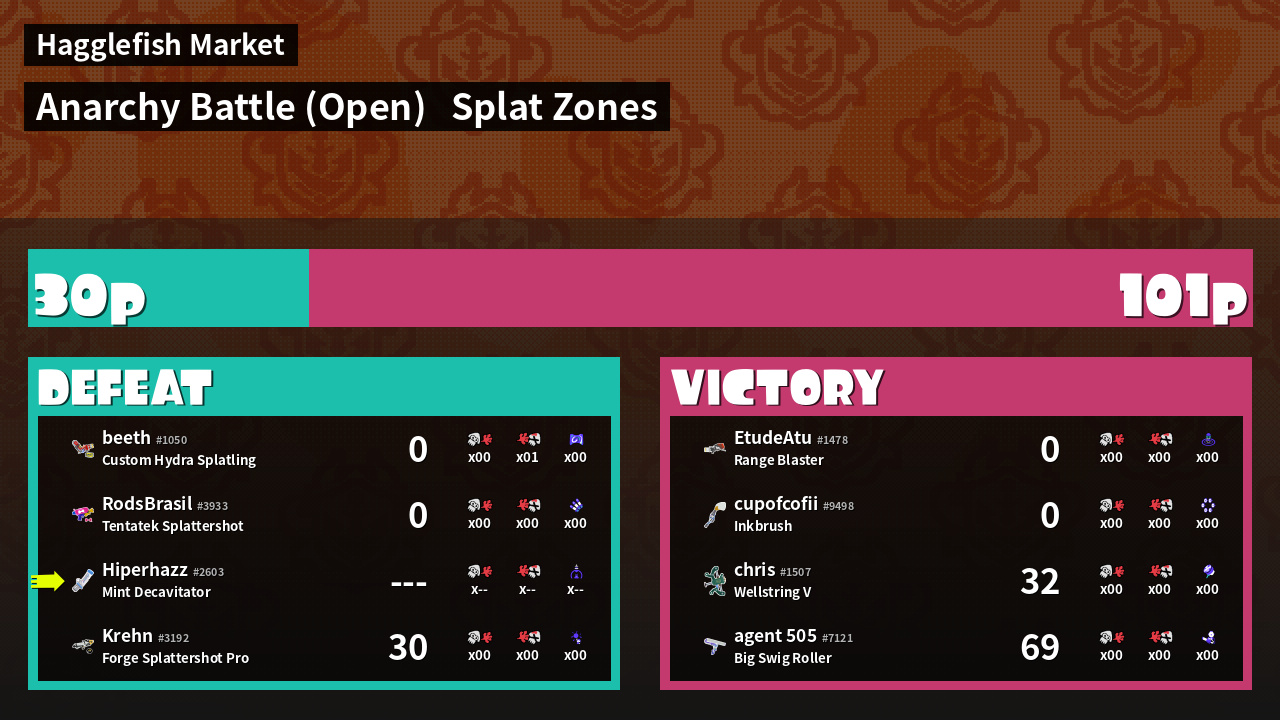 | Mode | Splat Zones - Anarchy Battle (Open) | ||