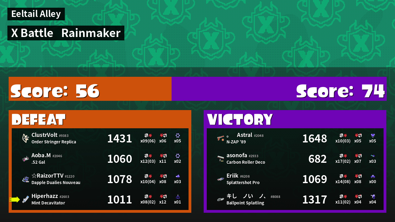 | Mode | Rainmaker - X Battle | ||